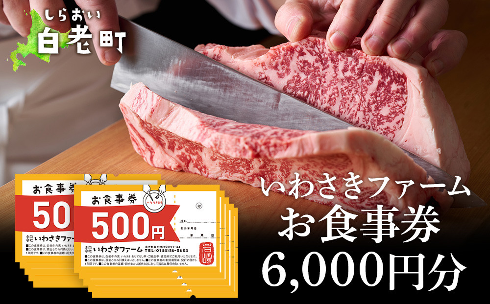 白老町いわさきファームのお食事券6000円分(500円×12枚)をお届け!