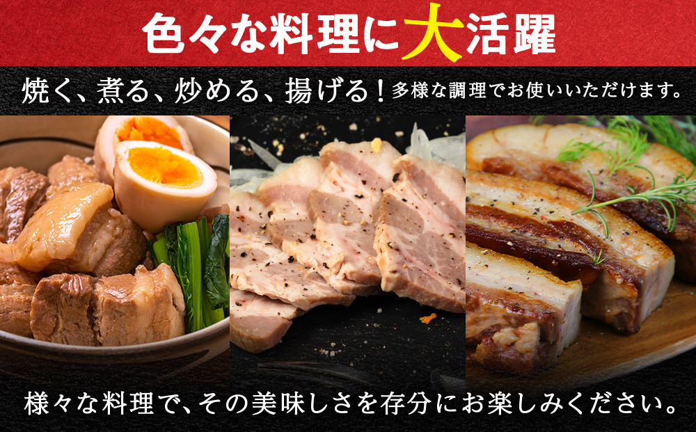 ◆濃厚な脂身が特徴で、こってりとしてボリュームがあります。ブロック肉なので、角煮やチャーシューなど、がっつりお肉を楽しみたい方におすすめです。