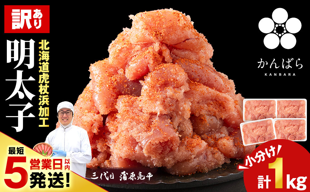 【最短5営業日以内発送】虎杖浜仕込み辛子明太子 不揃い訳ありきれ子 小分け明太子250g×4個 簡易包装 1kg たらこ タラコ 魚卵 海産物 北海道ふるさと納税 白老 ふるさと納税 北海道
