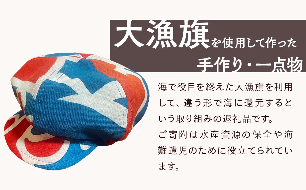 大漁旗を再利用した一点物のキャスケット 。