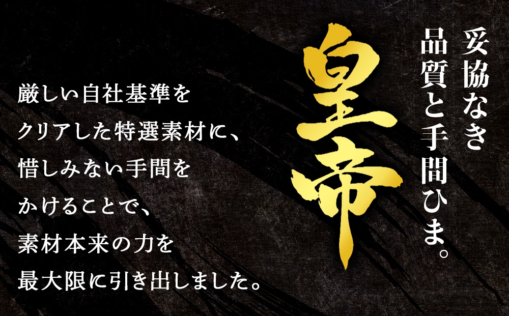 【皇帝とは】…さかな屋本舗の厳しい品質基準(サイズ・脂質・旨味・鮮度)より更に上、選りすぐり極上の原料のみを使用し干物の匠による本物を追求した特別な製造方法にて育てあげられ完成した別格の【極干】干物です。