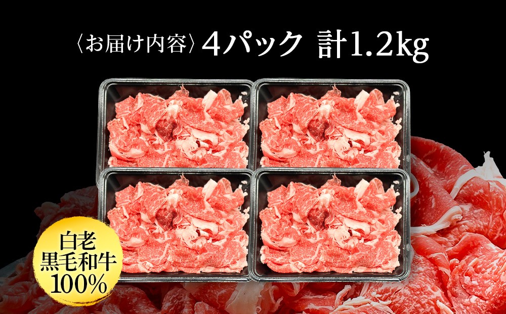 | 容量 | 白老産 黒毛和牛 切り落とし 300g×4パック |