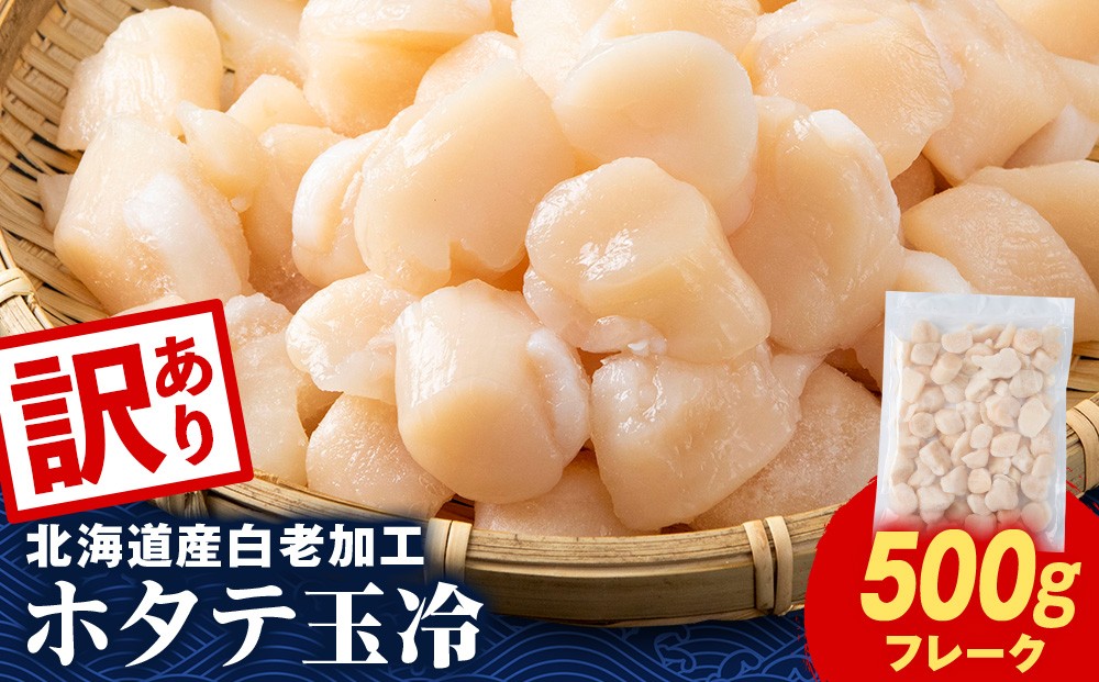 【訳あり】北海道産 白老加工 ホタテ玉冷〈フレーク〉500g×1<斉藤水産>玉冷 貝柱