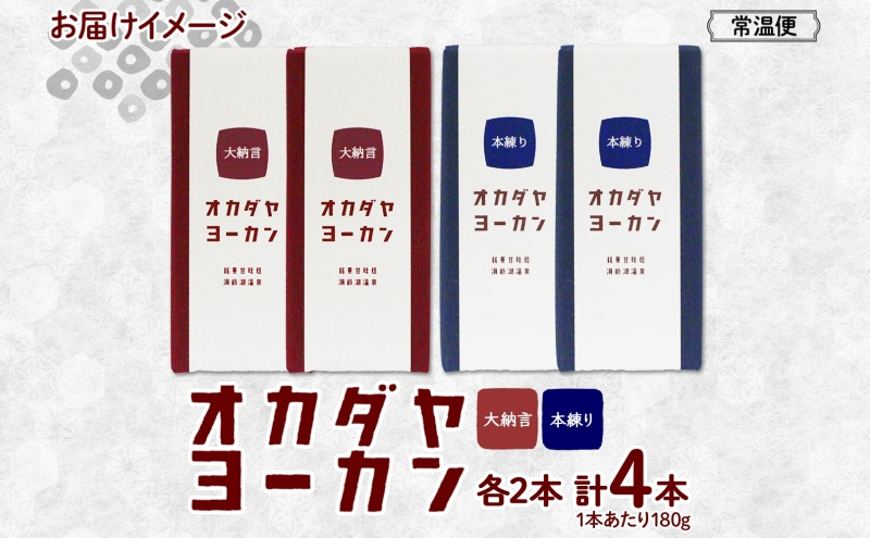 北海道 洞爺湖町 オカダヤヨーカン 2種 大納言 本練り 180g 計4本 羊羹 ようかん 和菓子 北海道産 小豆 粒 餡子 観光 お食事処 ご当地 老舗 洞爺湖温泉 岡田屋 人気 グルメ お取り寄せ お土産 プレゼント 送料無料 洞爺湖