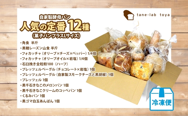 自家製酵母パン 人気の定番セット Lサイズ パン 道産 小麦 惣菜…19,000 円 店頭で人気のラインナップが勢揃い! 北海道洞爺湖町より「自家製酵母パン 人気の定番セット」をお届けします。 北海道産の小麦を中心に、安心して食べられる素材を使用。 おうちでいつもでも、ちょこっとおしゃれなパンが楽しめる詰め合わせです♪ ■道産小麦と自家製酵母を使用 パンの基本の小麦粉は、北海道産を使用しています。 小麦らしい自然な美味しさを感じられます。 自家製の酵母にもこだわり、レーズンやじゃがいもなど、 素材を生かした酵母で、香りの違いが楽しめます。 小麦と酵母をメインに、時間や手間をかけた手造りパンになります。 店舗でも人気の高い12種類をお届けします。 ~ラインナップ~ ・角食 半斤 ・黒糖レーズン山食 半斤 ・フォカッチャ(オリーブ×チーズ×ペッパー)1/4個 ・フォカッチャ(オリーブオイル×岩塩)1/4個 ・石臼挽き全粒粉100(カンパーニュ)ハーフ ・プレッツェルベーグル(チョコレート×岩塩)1個 ・プレッツェルベーグル(自家製スモークチーズと黒胡椒)1個 ・プレッツェル 1個 ・黒千石きなこのメロンパン 1個 ・黒千石きなこクリームのコッペパン 1個 ・くるみパン 1個 ・黒ゴマ白玉あんぱん 1個 ★お召し上がりの際には★ 常温で解凍し、オーブンで焼いてお楽しみください。 全粒粉のカンパーニュはせいろで蒸すと美味しくお召し上がりいただけます。 様々なジャンルのラインナップをお届けしますので、食べる楽しみは倍増!! 朝食やお子様の軽食など、お好きなタイミングでお召し上がりください。 パン屋自慢の「自家製酵母パンセット」をぜひ、お試しください。 ■地場産品類型■ 区域外の原材料を使用して、洞爺湖町内で、生地のミキシング、熟成、調味、成型、焼き上げ、梱包の製品化までの全工程を行うことで、一定以上の付加価値が生じています。(告示第5条第3号に該当) ※画像はイメージです。 ※解凍後の再冷凍は品質を損ないますので、おやめください。 - 冷凍便