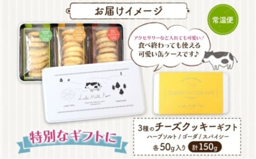 3種類の味を楽しめる「オリジナルチーズクッキーギフト 」お楽しみ下さい。