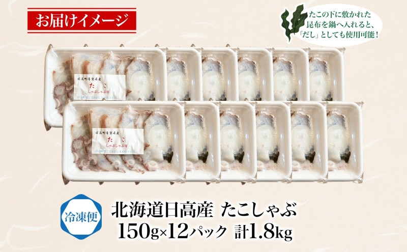 タコ しゃぶしゃぶ 厚切り 弾力 だし 小分け 石崎水産 150g×12 1800g パック 蛸 スライス たこしゃぶ お刺身 酢 昆布 だし さっぱり つまみ 北海道 日高町