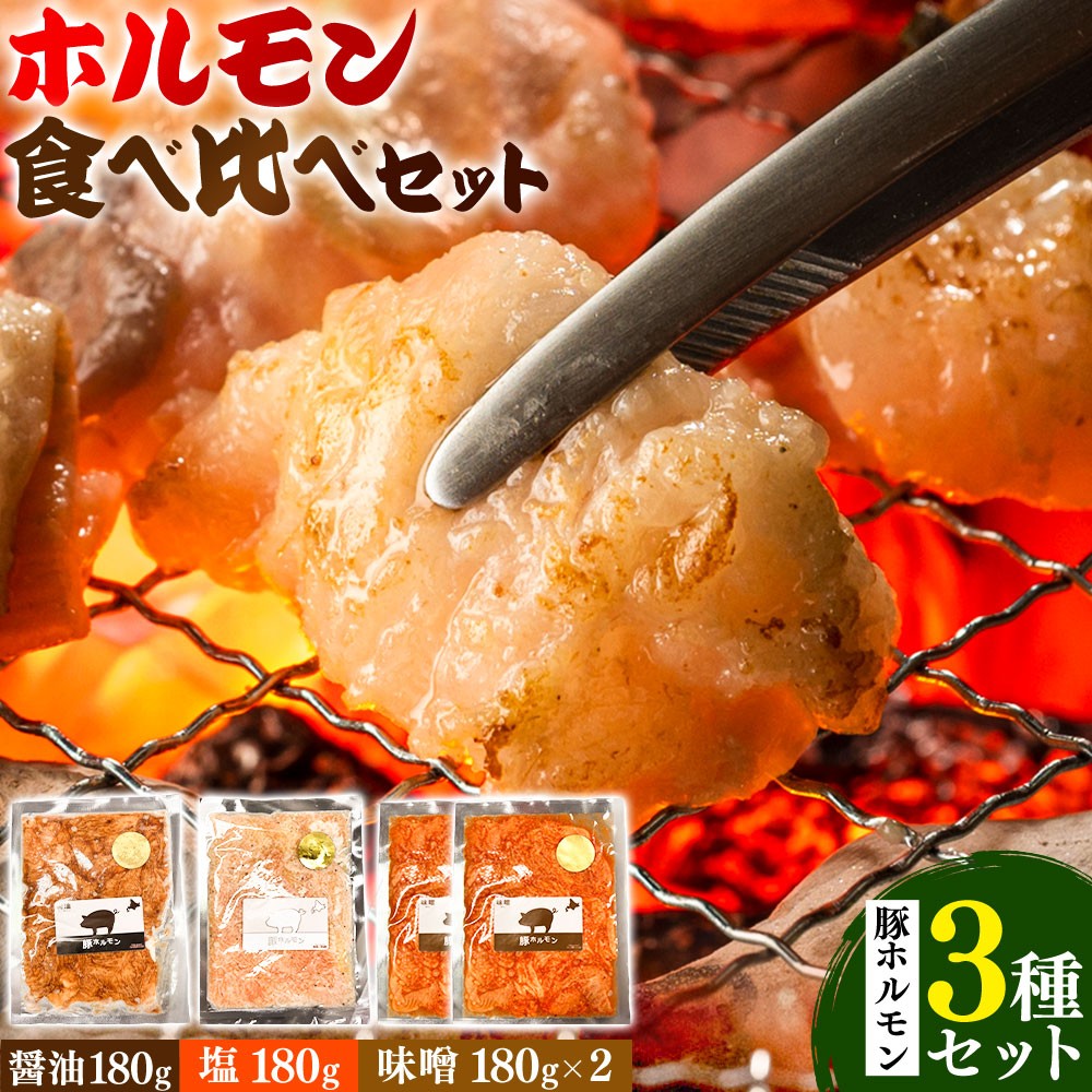 醤油と塩と味噌、3つの味を楽しめる本格ホルモンセット。 ホルモン ホルモン食べ比べセット 豚ホルモン3種セット 有限会社シンボリ・フーヅ(焼肉レストラン食道園)《30日以内に出荷予定(土日祝除く)》ホルモン 豚肉 牛肉 味付け 味付き 味噌 塩 醤油 バジル 焼くだけ簡単 真空パック 冷凍