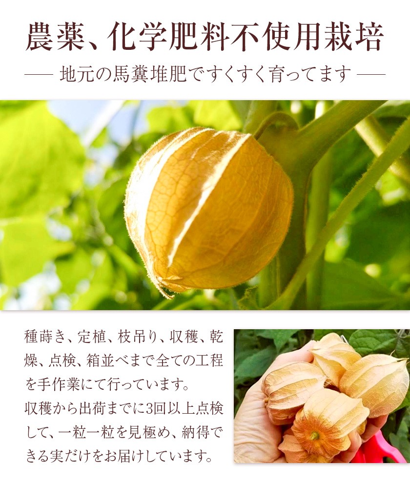 「まだ出会ったことのない驚きの美味しさで、皆様に笑顔を届けたい」という願いが込められています。フルーツほおずきはビタミンや鉄分、イノシトールなど栄養価も高く、健康を願う贈り物としても最適です。観賞用ではない、食べられる「幸せの果実」を知っていただくことで、日高町の豊かな実りを感じてほしい。この一箱が、皆様の日常に小さな驚きと甘酸っぱい幸せを運ぶことを願っています。