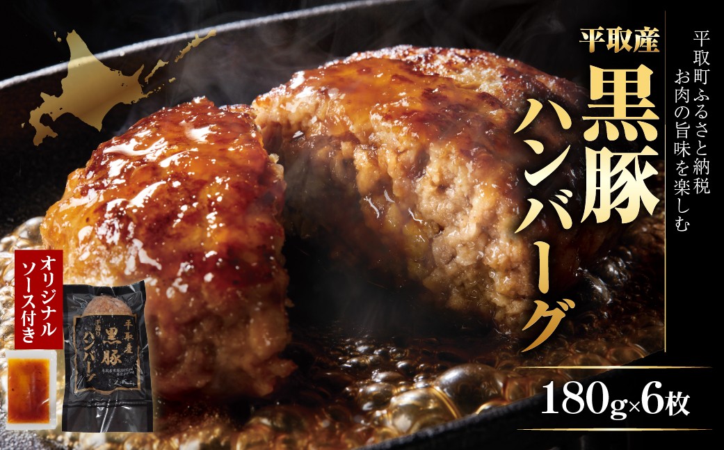 平取産黒豚ハンバーグ180g6枚 オリジナルソース付 ふるさと納税 人気 おすすめ ランキング 黒豚 肉 ハンバーグ 北海道 平取町 送料無料 BRTB029