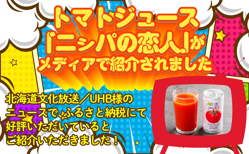 ☆北海道文化放送:UHB様のニュースにて、トマトジュース「ニシパの恋人」がふるさと納税にて好評いただいているとご紹介いただきました!☆