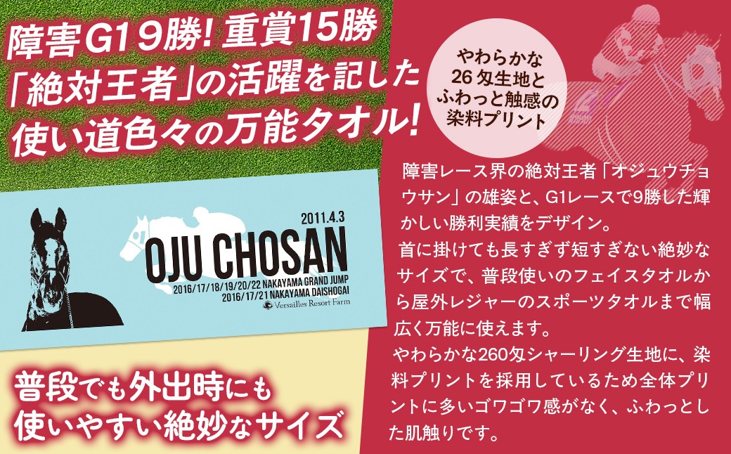障害レース界の絶対王者「オジュウチョウサン」が活躍したG1レースで9勝したことも記載されており、首に掛けても長すぎず短すぎず、家庭用のフェイスタオルから屋外のスポーツタオルとしても万能に使えます。