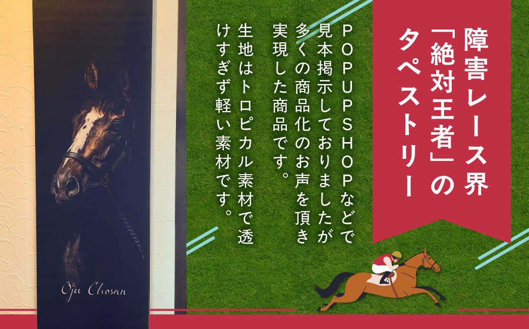障害レース界の絶対王者「オジュウチョウサン」のデザインが印刷されたタペストリーです。