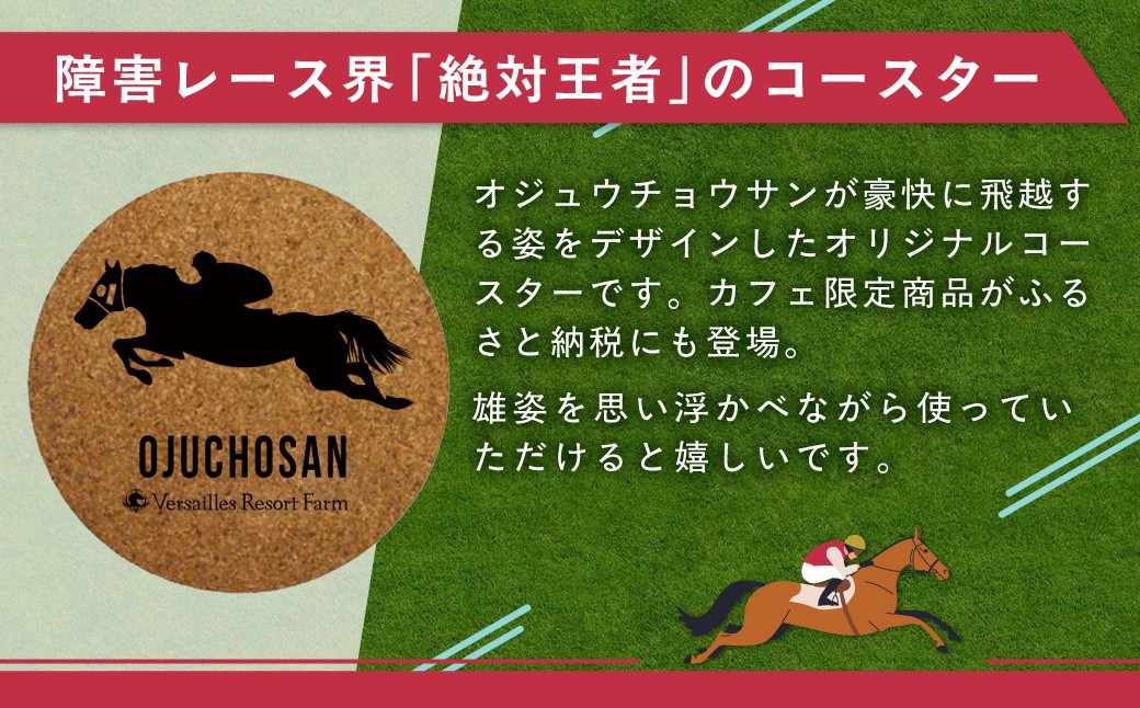 障害レース界の絶対王者「オジュウチョウサン」が豪快に飛越する姿をデザインしたオリジナルコースターです。