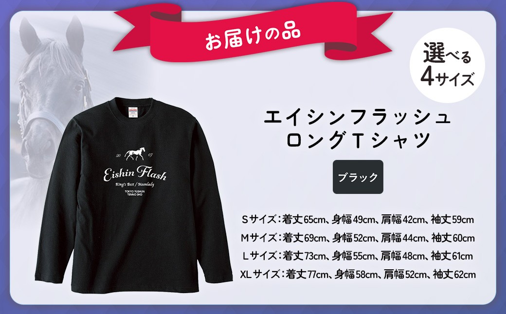 【エイシンフラッシュ】(ブラック)ロングTシャツ選べる4サイズ【S・М・L・XL】【ふるさと納税 人気 おすすめ ランキング 馬 競馬 競走馬 引退馬 エイシンフラッシュ 日高 北海道 平取町 送料無料】 BRTV025-v