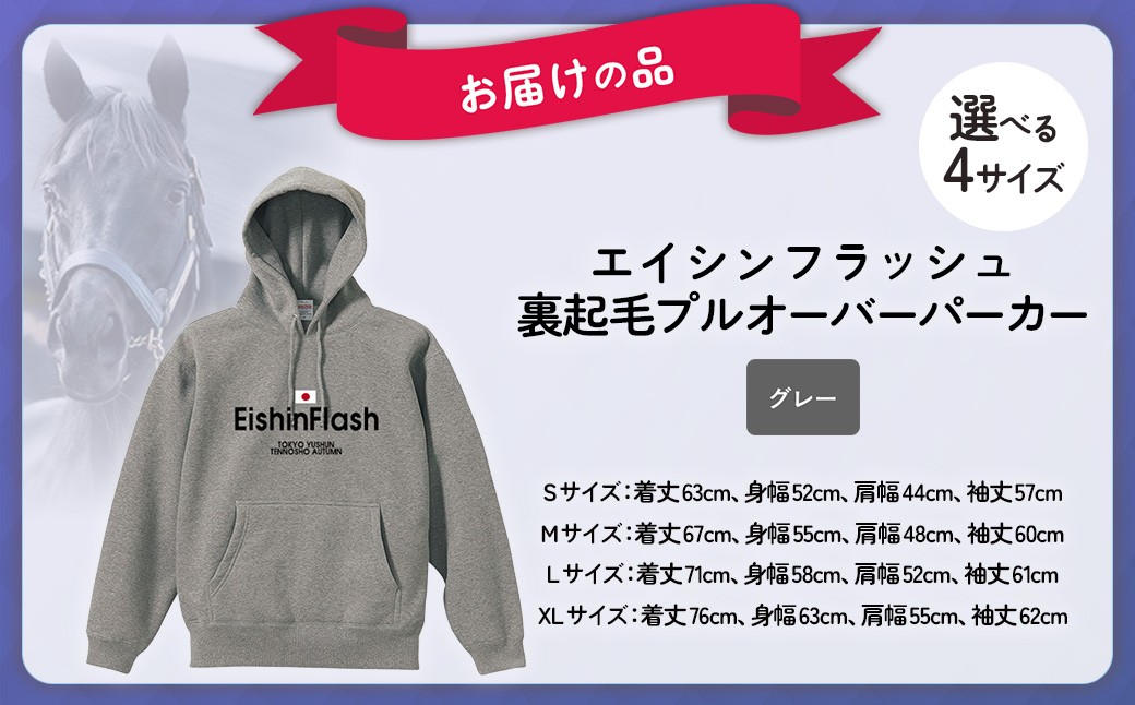 【エイシンフラッシュ】(グレー)プルオーバーパーカー裏起毛 選べる4サイズ【S・М・L・XL】【ふるさと納税 人気 おすすめ ランキング 馬 競馬 競走馬 引退馬 エイシンフラッシュ 日高 北海道 平取町 送料無料】 BRTV027-v