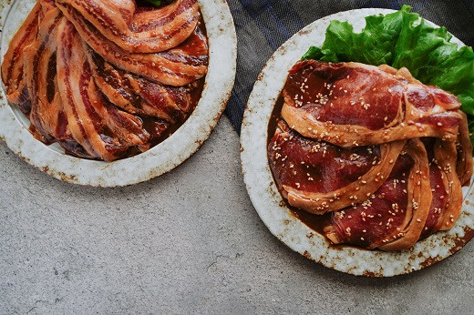 | 容量 | 豚ロース肉 1パック500g(豚ロース肉350g・タレ150g) 豚バラ肉 1パック500g(豚バラ肉350g・タレ150g) |
