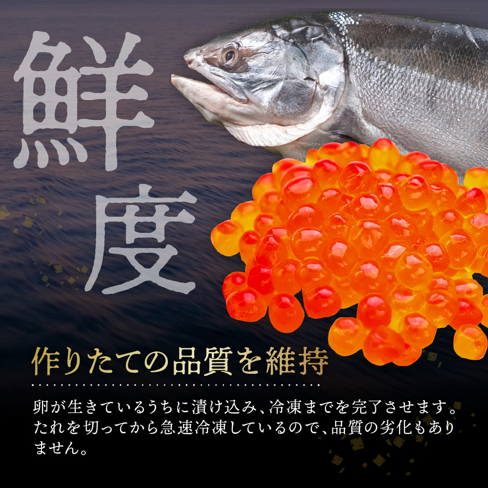 いくら醤油漬は、北海道沿岸の定置網で水揚げされる秋鮭から取り出した質の良い卵を目利きをして使用し特製たれに漬け込んでいます。