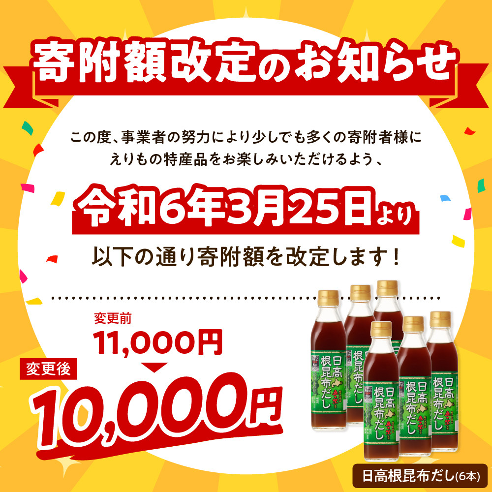 えりも【マルデン厳選】日高根昆布だし300ml×6本【er002-005-a】
