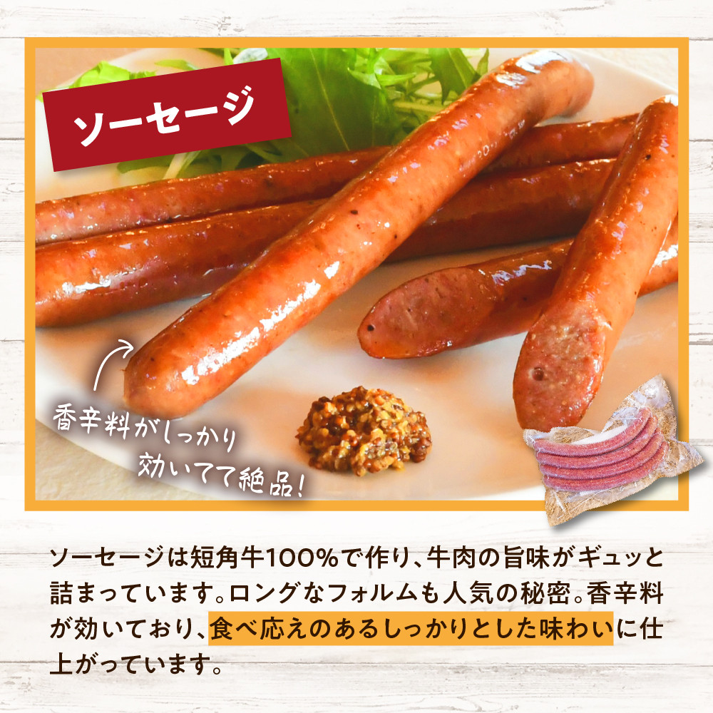 ソーセージは短角牛100%で牛肉の旨味がギュッと詰まっています。