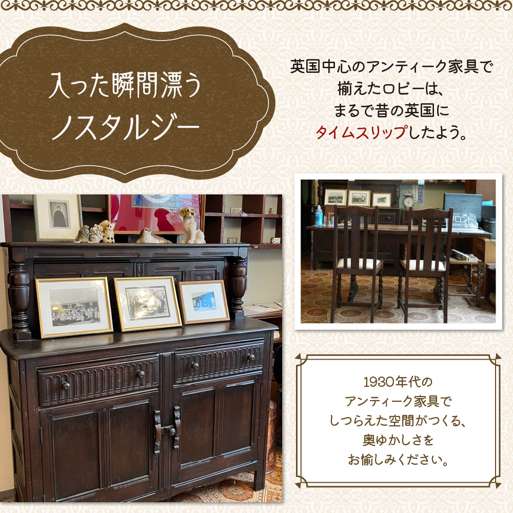 英国1930年代の英国アンティーク家具でおもてなし 【クリフハウス柳田旅館】洋室アンティークツイン1泊2食付2名様【er006-001-a】