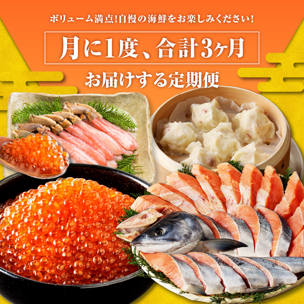 ボリュームたっぷりの海鮮定期便をお楽しみください R7 3ヶ月定期便!えりも海鮮ボリューム短期コース 【er002-035-b】(いくら 鱒いくら いくら醤油漬け 炙りぶり ぶり かに ずわいがに かにしゃぶ 新巻鮭 鮭 たこ おかず お惣菜 魚介 おつまみ グルメ お取り寄せ 送料無料 冷凍 北海道 えりも町)