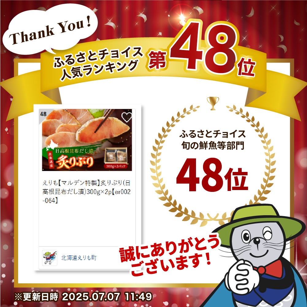 ぶりの旨味が凝縮!! えりも【マルデン特製】炙りぶり(日高根昆布だし漬)300g×2p【er002-064-a】