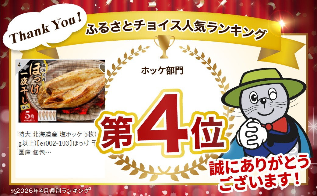 大きく脂がのった真ほっけは絶品です! 特大 北海道産 塩ホッケ 5枚(400g以上)【er002-103】ほっけ 干物 国産 個包装 冷凍 海鮮 魚介 北海道 えりも町 真ほっけ マルデン特製