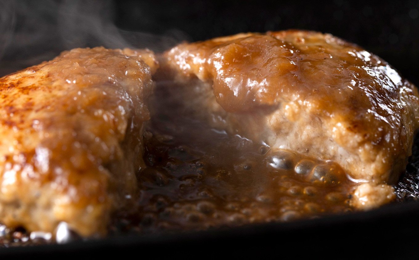黒毛和牛みついし牛とホエー豚をブレンドしてつくった ハンバーグです。