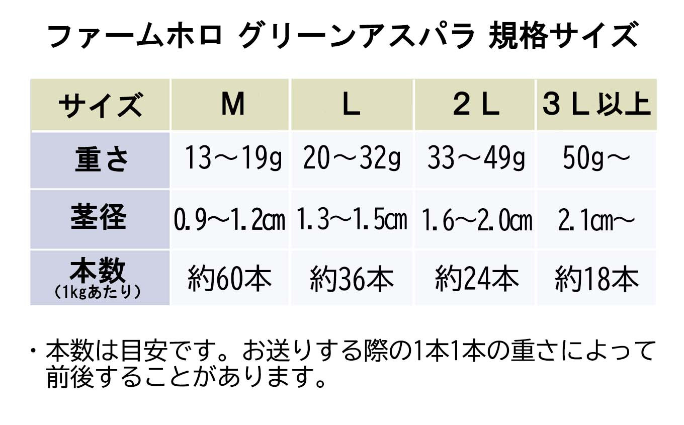| 容量 | グリーンアスパラLサイズ 1kg <原材料> グリーンアスパラ |