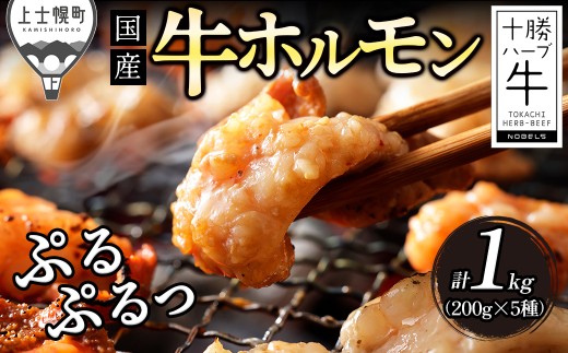 十勝ハーブ牛 味付き ホルモン ミックス 焼肉 計1kg(200g×5種…