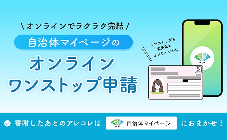 「自治体マイページ」から、マイナンバーカードとマイナポータルアプリを使ったオンラインワンストップ申請ができます。(詳しくは、翌営業日以降にお送りするメールまたはワンストップ申請書にあるご案内を参照ください。)