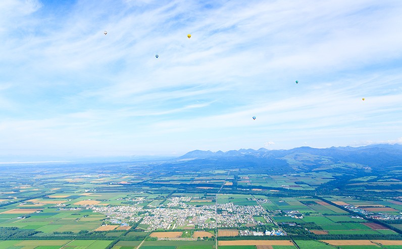 上士幌町では1974年に全国で初めての熱気球大会を開催し、以来数々のパイロットがこの空をフライトしてきました。2023年には節目となる「第50回北海道バルーンフェスティバル」が開催され、熱気球が更に盛り上がっています。