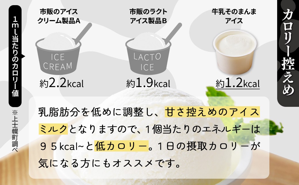 上士幌町にある高木牧場の自家生乳や北海道産ビートのてんさい糖、よつ葉生クリームを使用し、乳脂肪分を控えめに調整したあっさり味のアイスミルクをたっぷり24個お届けします。