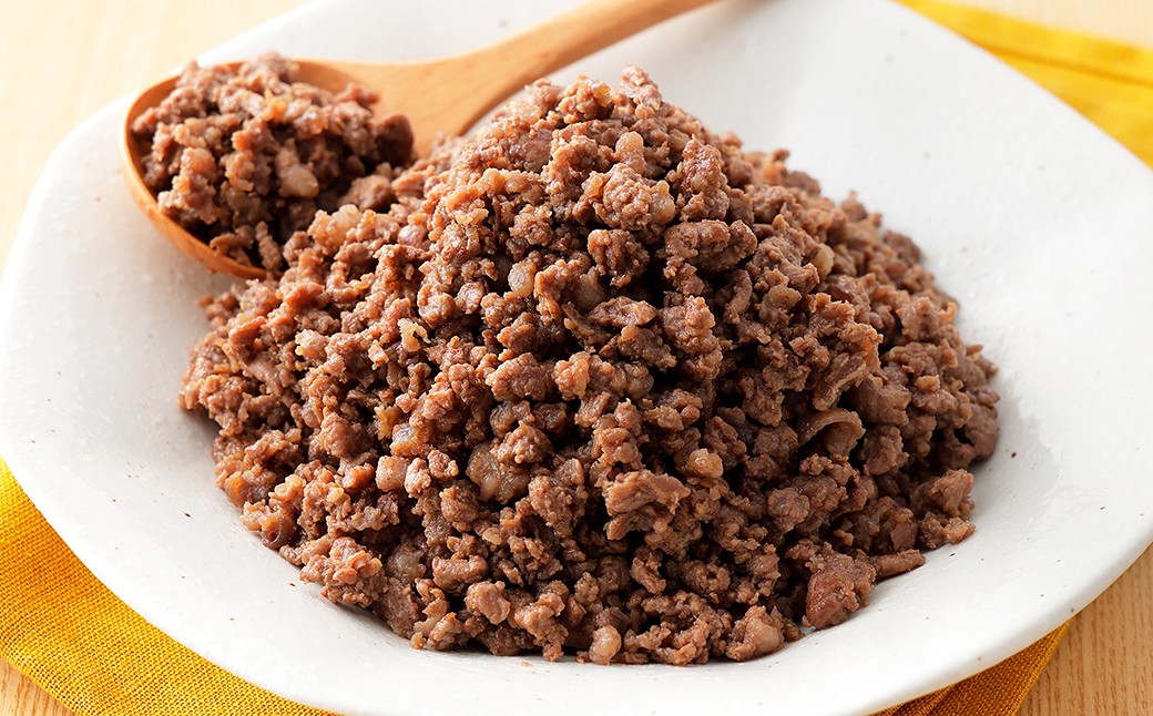十勝の冷涼・低湿度の気候風土と騒音のない静かな環境で、ハーブを混ぜたエサで長く健康に育てた「十勝ハーブ牛」から、サーロインやカタロースなどのひき肉をご用意します。