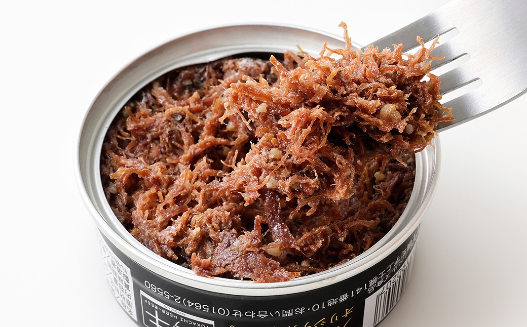 端材肉等を使用せずネックとスネを部位に指定、その旨み成分とコラーゲンでしっとりととろけるような、粗ほぐしタイプのジューシーな食感が特徴です。化学調味料や発色剤を一切使用しない無塩せきコンビーフなので、自然な色合いと風味が楽しめるその味わいは、一般的なコンビーフの概念を覆す美味しさ。