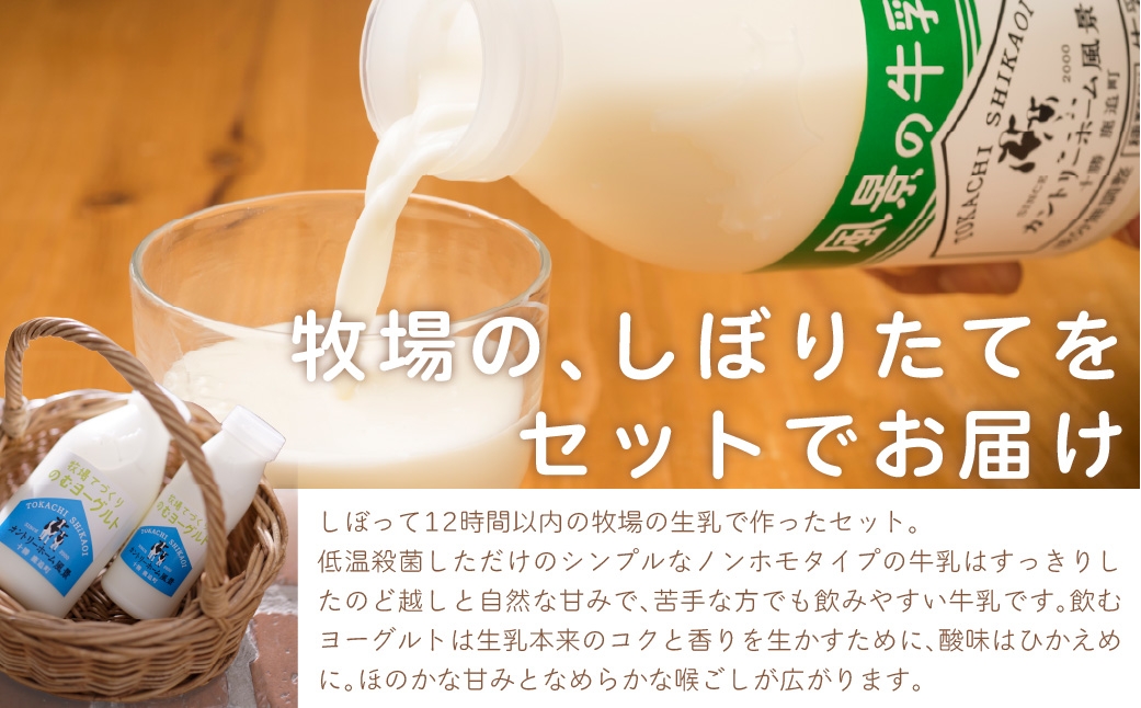 牧場で大切に育てた牛の新鮮な生乳から生まれた、のむヨーグルトと牛乳のこだわりセットです。