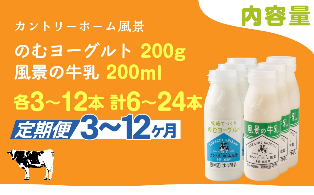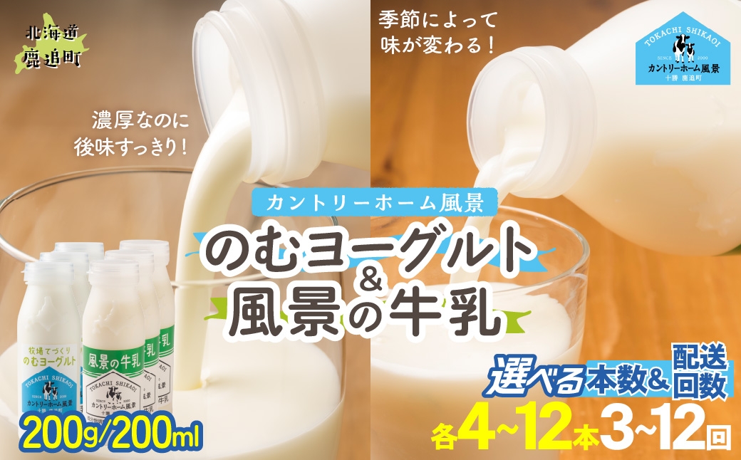 のむヨーグルト200g 風景の牛乳200ml セット 選べる本数 期間 【 ふるさと納税 人気 おすすめ ランキング 牛乳 ヨーグルト 無添加 てんさい オリゴ糖 濃厚 定期便 カントリーホーム風景 北海道 十勝 鹿追町 送料無料 】 SKB115-v