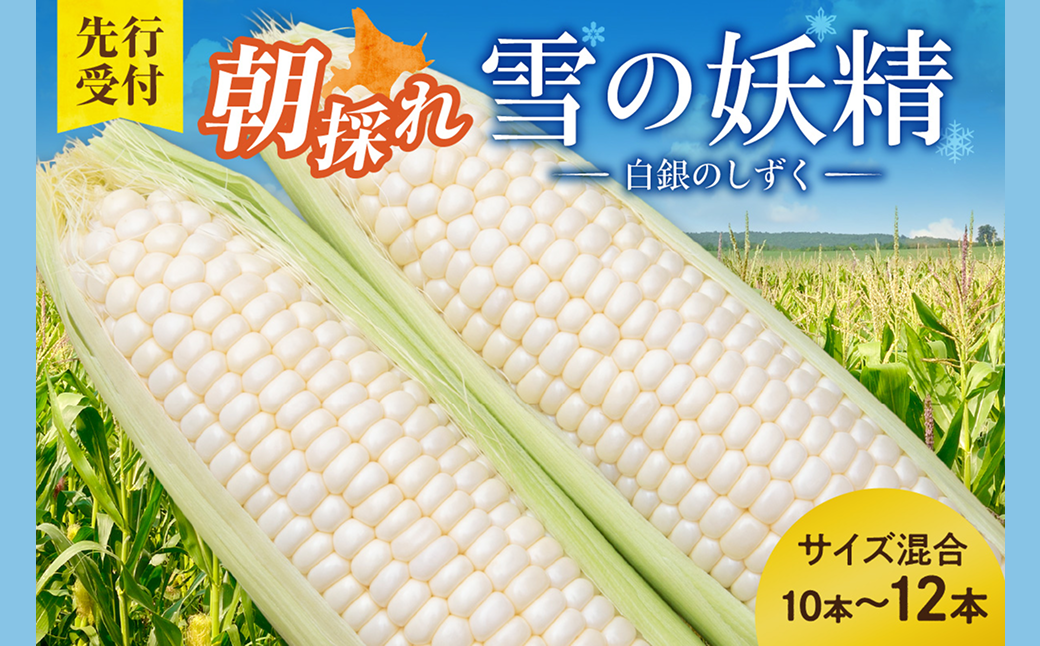 ついに登場!2026年発送分北海道清水町産 希少品種!白~い!雪の妖精! 先行受付!【2026年8月頃~発送開始!】北海道十勝清水町産 希少品種! 白いとうもろこし 雪の妖精 サイズ混合 10~12本 北海道産 2026年 とうもろこし とうきび 産直 産地直送 清水町 北海道 _S021-0017