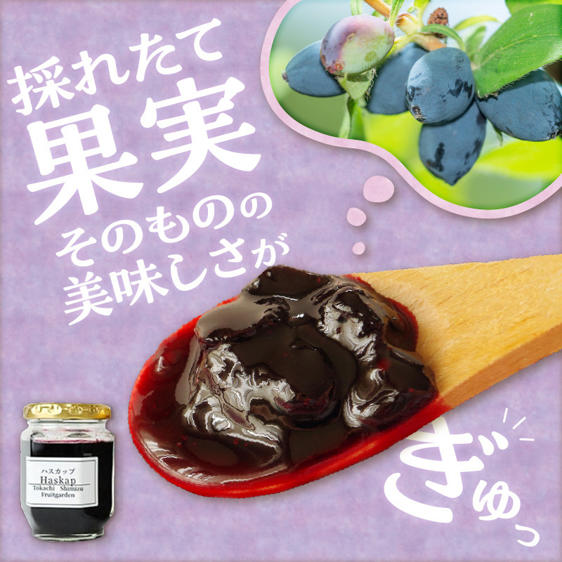 とかちしみずフルーツガーデンで栽培される、ハスカップとそれを加工したハスカップジャムのセットです。