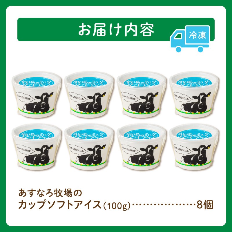 あすなろ 牧場 カップ ソフト アイス セット 100g × 8個 牛乳 ノンホモ牛乳 スイーツ おやつ デザート 北海道物産展で人気 贈り物 お取り寄せ 北海道 清水町
