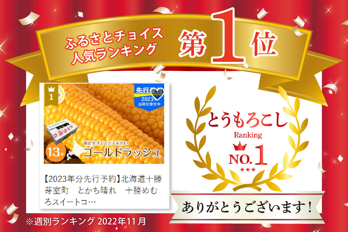 粒が大きくてとても甘いとうもろこし!ゴールドラッシュ 【2024年分先行予約】北海道十勝芽室町 とかち晴れ 十勝めむろスイートコーン 13本入り me010-005-24