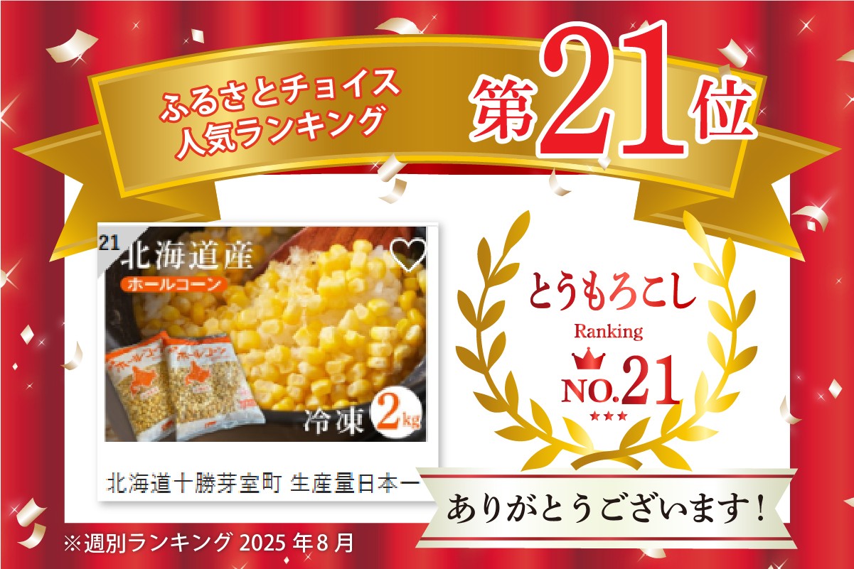 スイートコーン生産量日本一の町から冷凍ホールコーンをお届け 北海道十勝芽室町 生産量日本一 冷凍 ホールコーン 1kg×2袋 me026-031c