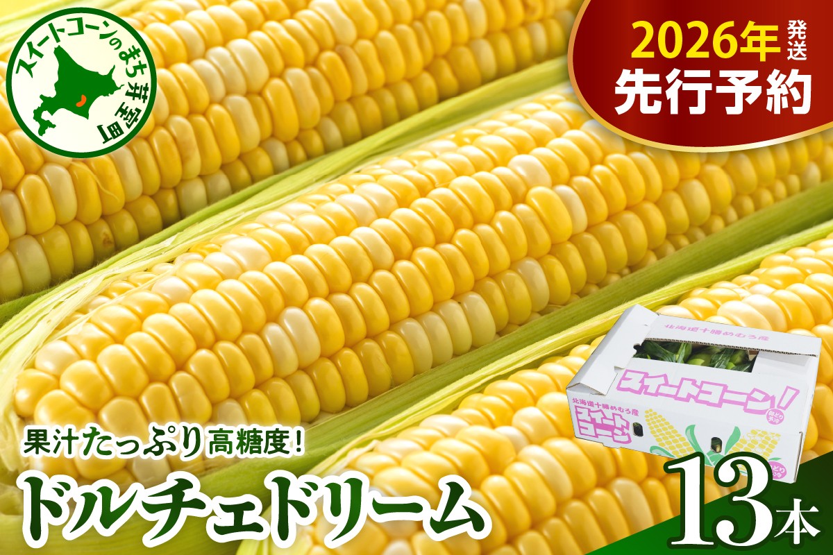 まるでスイーツ!?果汁たっぷり高糖度! 【先行受付】【2026年7月下旬~8月上旬頃配送】北海道十勝芽室町 スイートコーン ドルチェドリーム 13本 me062-001c-26