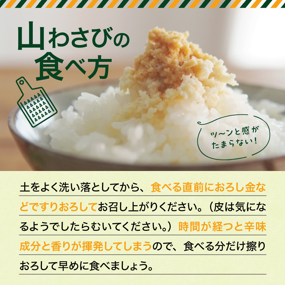 ※土をよく洗い落としてから、食べる直前におろし金などですりおろしてお召し上がりください。(皮は気になるようでしたらむいてください。)