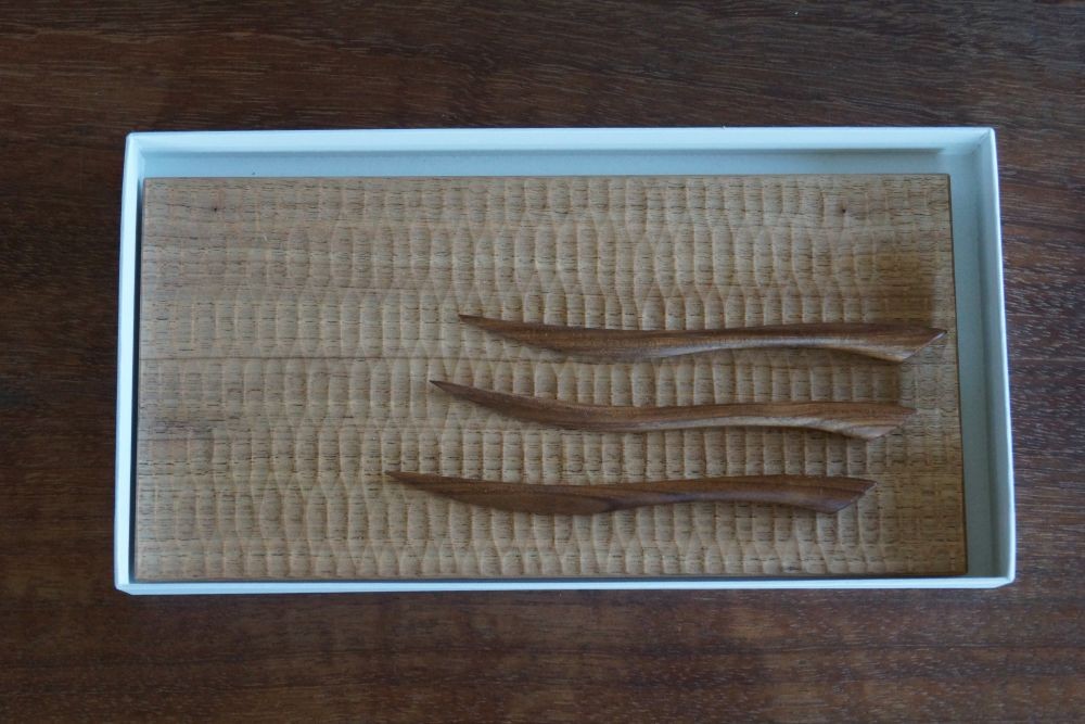 このえんじゅの木を使った菓子切りは幣工房オリジナルのデザインです。