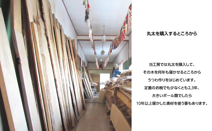 十勝 幕別町の旧中里小学校を工房にし、北海道産の木を使用して一点一点ハンドメイドで色あい・木目がそれぞれ異るうつわを作成しています。
