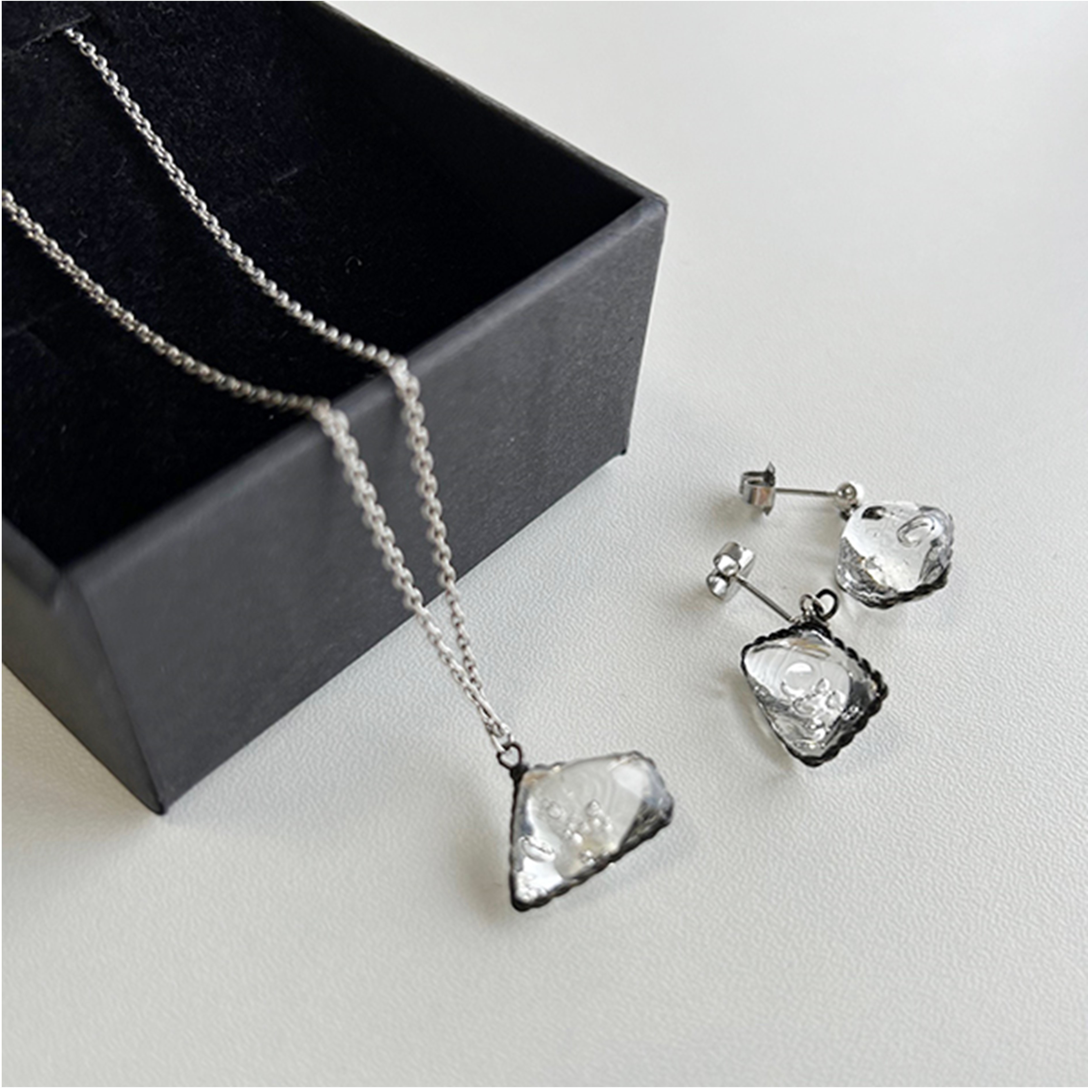 豊頃町大津海岸にあがる氷塊ジュエリーアイスをデザインしたネックレスとピアスのセットです。