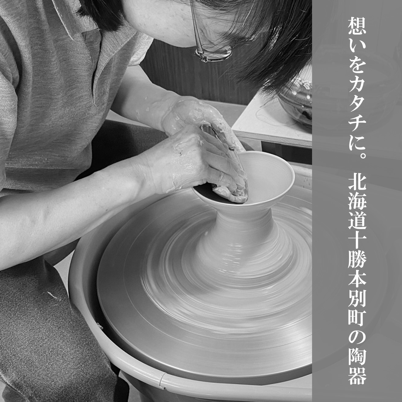 「日常で使いやすい、口あたりの良いもの」をテーマに精力的に制作活動を行い、丁寧に仕上げています。テーブルやお部屋を鮮やかに彩ってくれます。この世に2つとない手作りの花器はいかがでしょうか。