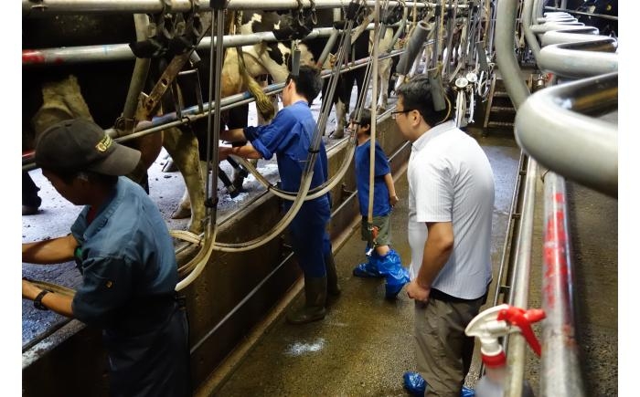 14:30 牧場散策、牛追い体験、搾乳見学